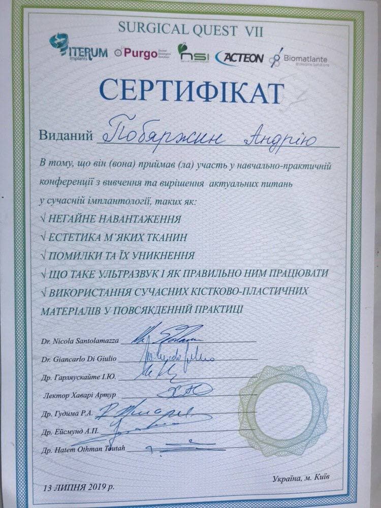 Вартість імплантанта та встановлення(без